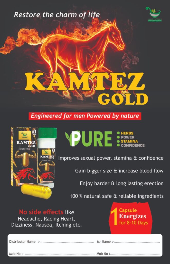 Kamtez Gold is a premium Ayurvedic capsule specially formulated to enhance strength, stamina, and overall vitality. It contains a balanced blend of traditional Ayurvedic herbs and natural ingredients that help energize both the body and mind.